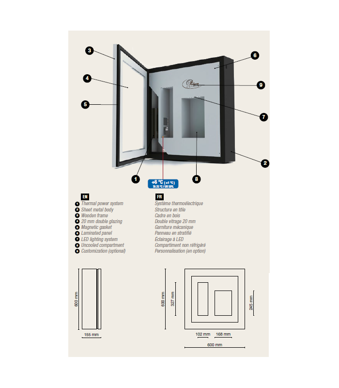 - Dimensions (LxPxH) : 600 x 155 x 600 mm