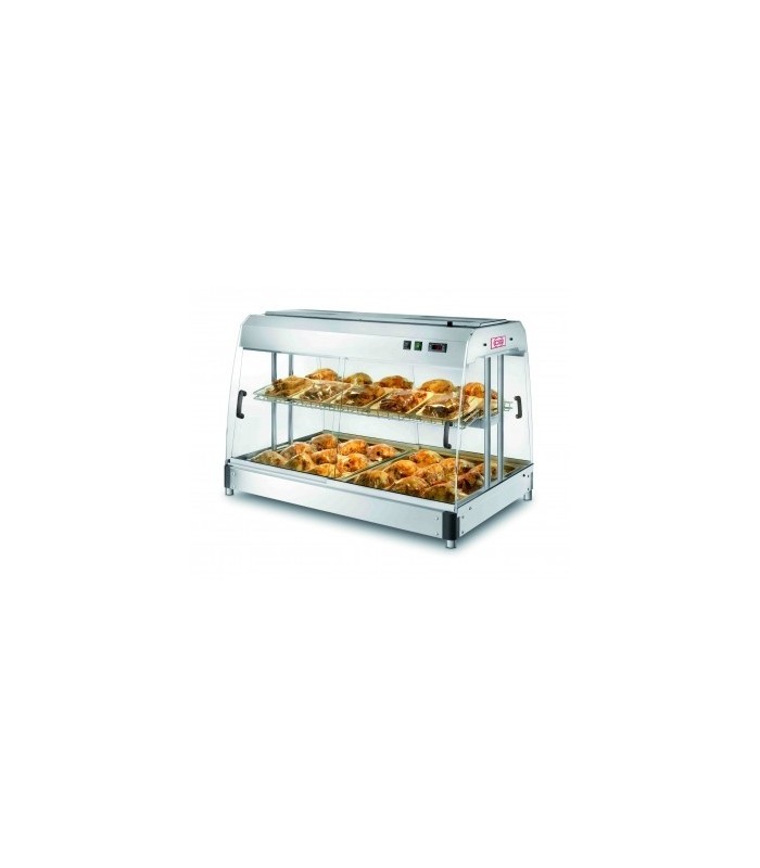 Présentoir chaud ventilé avec étagère interne illumination, capacité 2 x GN 2/1 :