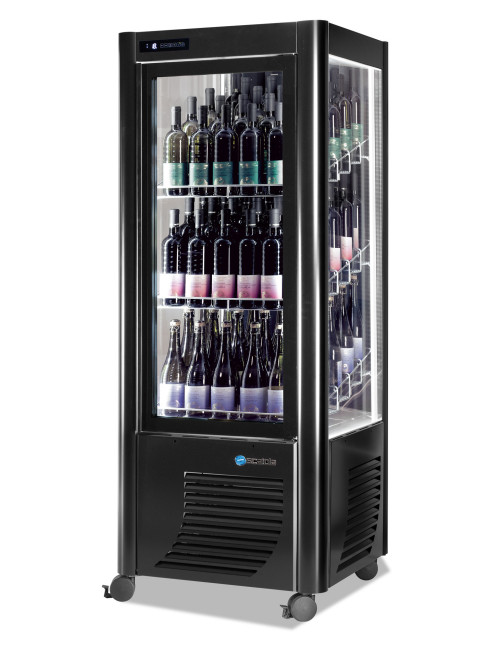 Cave à vin design montée sur 4 roulettes. Idéale pour les professionnels de la restauration et des bars. Fabrication italienne.
