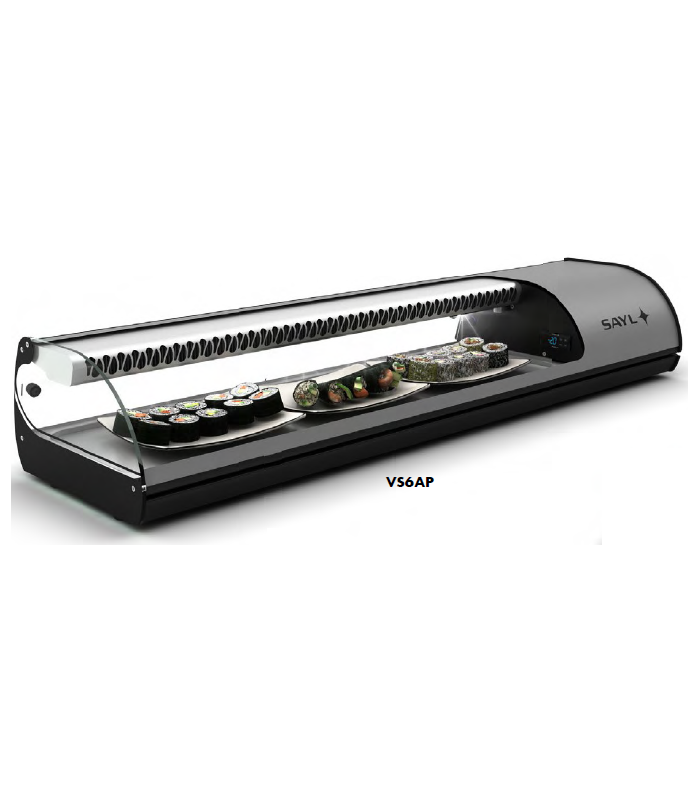 Vitrine à sushis design contemporain et moderne à poser sur les comptoirs. Très attractive tout en gardant les sushis au frais à la bonne température. Idéal pour les restaurants.