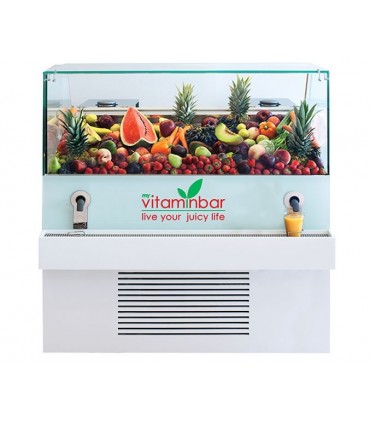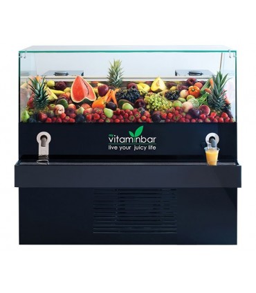 Combinaison innovante d'un distributeur de jus de fruits frais et d'un comptoir à fruits avec présentation élégante et vendeuse des produits, vous permettra de faire en grande quantité des jus, productivité accrue pour grande rentabilité.Optimal pour les cafés, bars, restaurants et vente à emporter spécialisée.